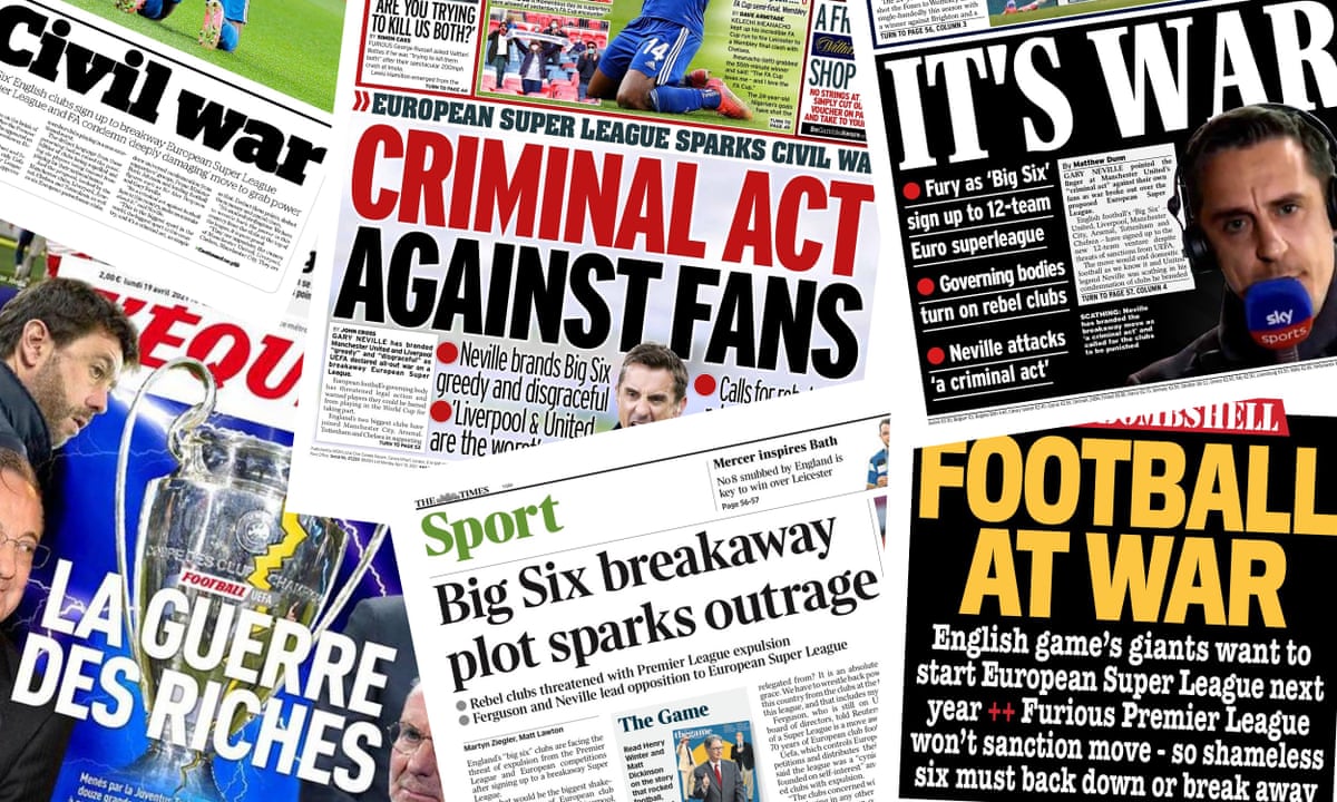 It S War What The Papers Say About The European Super League European Super League The Guardian